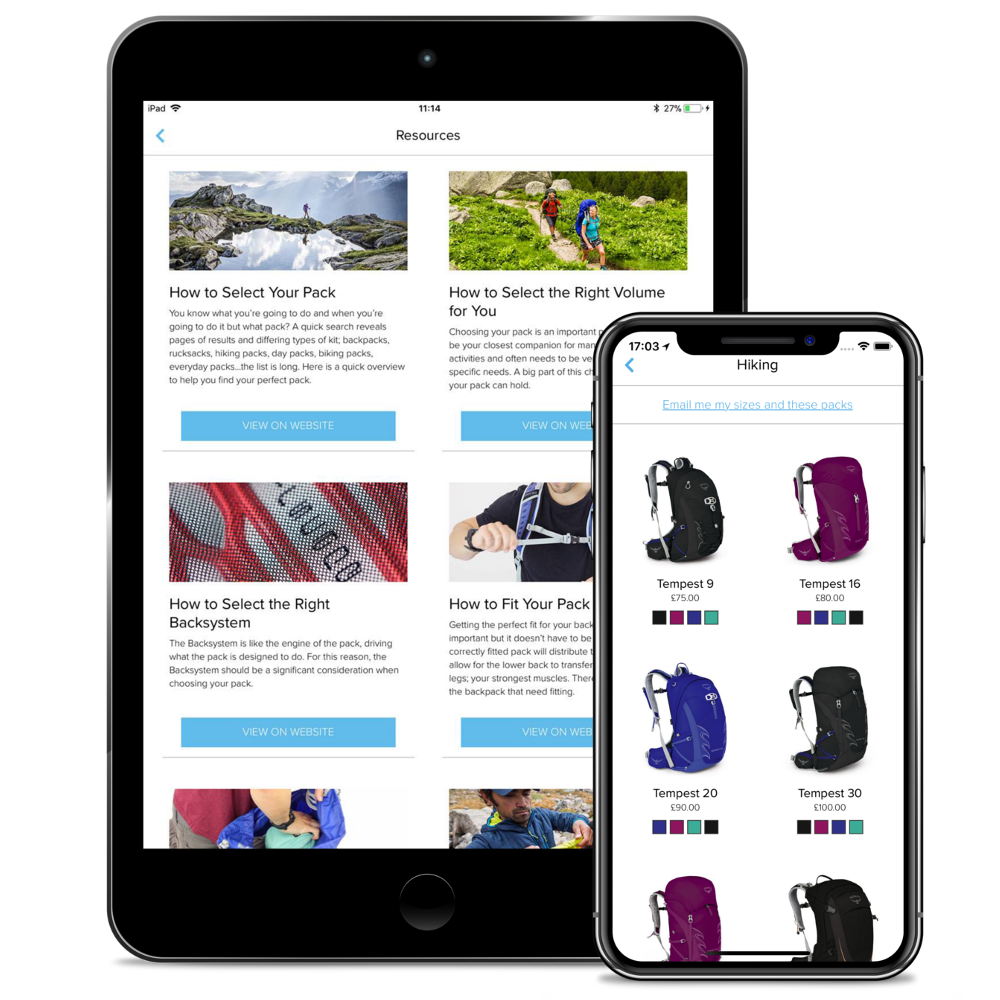 Nakon što prođete ove tri etape, aplikacija će procijeniti koje veličine ruksaka Osprey vam najbolje odgovaraju. Veličine sustava za leđa najčešće su navedene kao S, M i L, ili S/M i M/L, stoga nemojte biti iznenađeni što vam aplikacija prikazuje odmah dvije mogućnosti. Ako vam se konačna veličina ne čini odgovarajućom, lako možete ponoviti postupak pomoću druge fotografije. Na kraju u aplikaciji možete odabrati željeni ruksak prema vrsti aktivnosti ili se nakon klika na karticu Resources udubiti u mnoge upute, kako odabrati pravi ruksak i kako ga prilagoditi svojoj figuri. Saznat ćete i kako očistiti ruksak ili u njega što praktičnije spakirati sve potrebno.